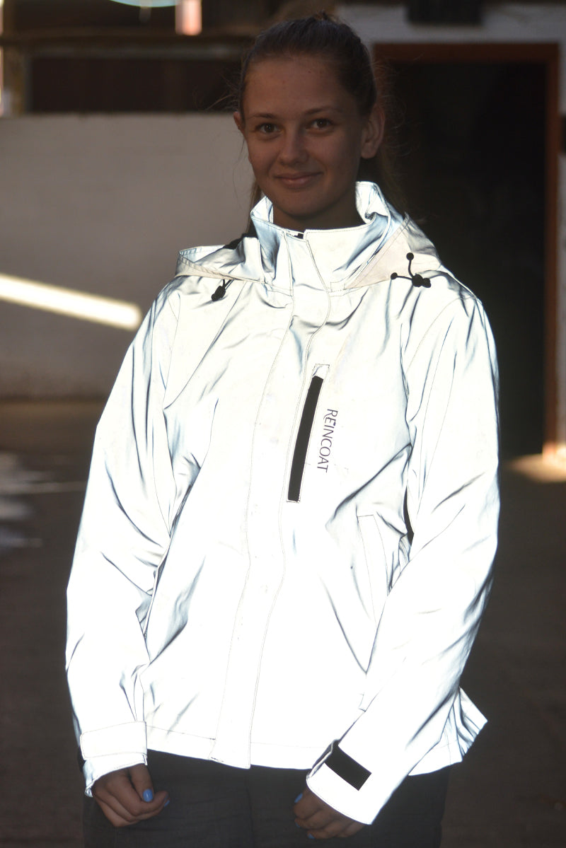 Award-winning reflective silver waterproof shell jacket with mesh lining. Read more
