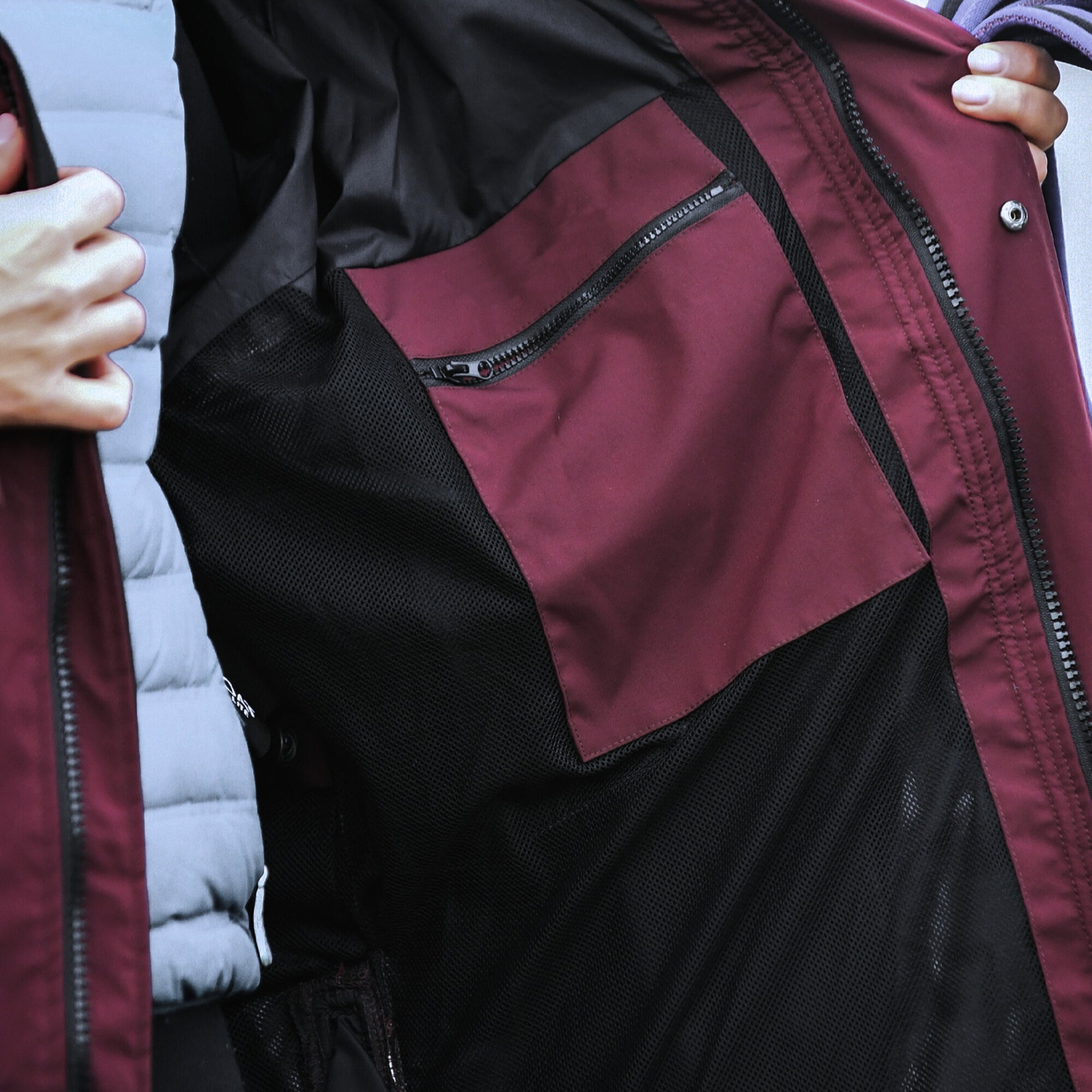 Two fleece-lined hand pockets and one internal chest pocket- all waterproof and perfectly sized for warmth and secure storage.