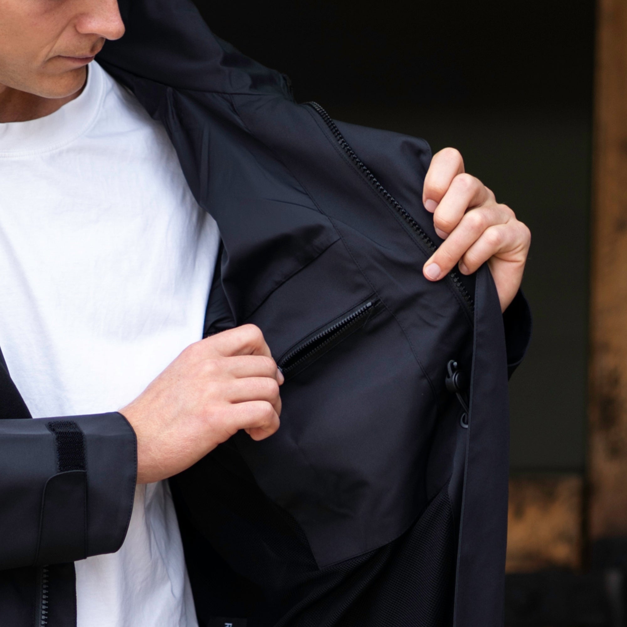 Two fleece-lined hand pockets and one internal chest pocket- all waterproof and perfectly sized for warmth and secure storage.